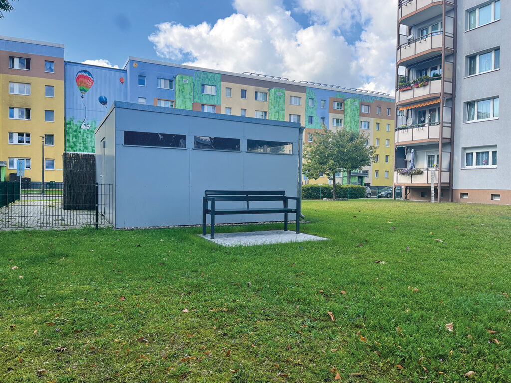 Auf diesem Spielplatz in der Straße des Friedens 51 – 52 erwartet die Kinder eine neue Spielmöglichkeit: Hier entstand ein moderner Spielturm mit Rutsche. Wir wünschen Ihnen viele fröhliche Momente!